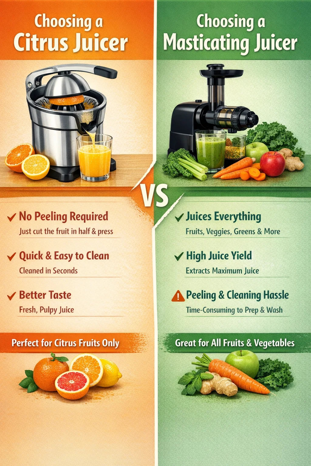 Ini adalah dilema klasik. Ramai orang bergelut dengan keputusan sama ada untuk membeli pemerah mengunyah serba boleh atau pemerah sitrus khusus semasa mengubah suai dapur mereka atau memulakan gaya hidup sihat.