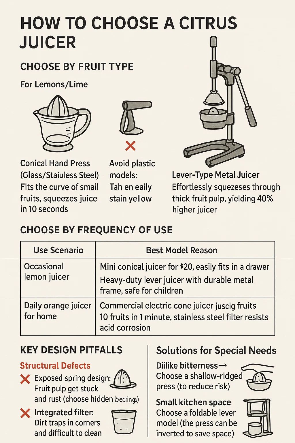 Berikut adalah disyorkan Juicer Citrus Jenis berdasarkan keperluan yang berbeza, diringkaskan berdasarkan pengalaman pengguna dunia nyata: